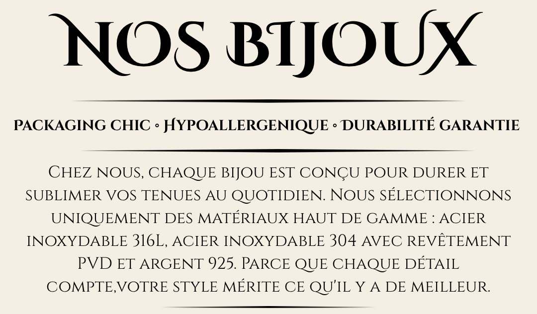 Décliné en plusieurs styles, notre collection comprend des créations intemporelles, résistantes et raffinées, pensées pour sublimer chaque personnalité et offrir un bijou chargé de sens.